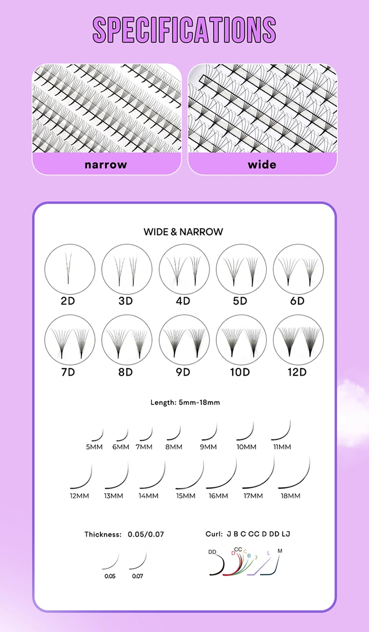 Täydellinen sekä ammatilliseen että henkilökohtaiseen käyttöön: Esivalmistetut tuulettimemme Väärä ripset ovat puhtaampia ja niillä ei ole liimajäämiä, mikä helpottaa niiden käsittelyä ja liikkua levityksen aikana. Tämä voi säästää aikaa ja nopeuttaa työtä riippumatta siitä, oletko kokenut ripsitaiteilija vai aloittelija. Nämä fanit sopivat sekä ammatilliseen että henkilökohtaiseen käyttöön, tarjoamalla helppokäyttöisyyttä ja erinomaisia tuloksia.
