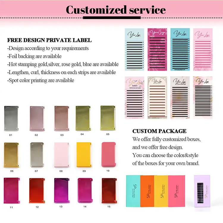 Ammattimaisena ripsien toimittajana SP: n ripsien ripsillä on yli 20 vuoden kokemus ripsien valmistuksesta ja se tekee tiivistä yhteistyötä lukuisten tunnetun ripsien tuotemerkkien kanssa. Tuemme henkilökohtaisia suunnittelupyyntöjä ja tarjoamme räätälöityjä palveluita varmistaaksemme, että jokainen tuote vastaa ainutlaatuista tyyliäsi. Tarjoamme korkealaatuisia, käyttäjäystävällisiä tuotteita ja poikkeuksellisen ostoskokemuksen. Jos sinulla on kysyttävää ripsien laajennustuotteistamme, ota rohkeasti yhteyttä meihin milloin tahansa. Tiimimme on täällä tarjoamaan tyydyttäviä ratkaisuja.