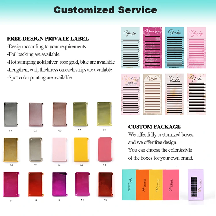 SP-ripsi tarjoaa laajan valikoiman räätälöintivaihtoehtoja V-muotoisille ripsien kihareille, mukaan lukien omat tuotemerkit ja pakkaukset, pienen tilausmäärä ja ilmainen suunnittelutuki. Testaa laatu luottavaisesti ennen irtotavaratilauksen tekemistä käytettävissä olevien ilmaisten näytteiden avulla.
